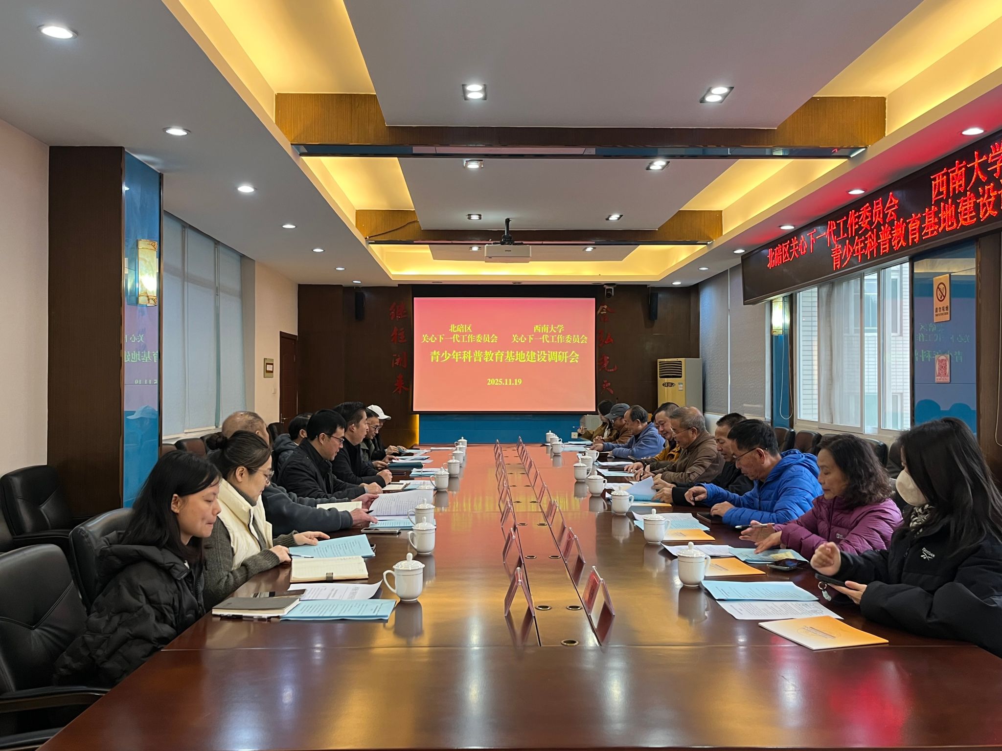 为进一步深化青少年科普教育工作,整合校地优质资源,推动青少年科普教育基地高质量建设,11月19日上午,西南大学关心下一代工作委员会与北碚区关心下一代工作委员会联合在西南大学柑桔研究所召开青少年科普教育基地建设调研座谈会。北碚区关工委常务副主任张遇鸣、副主任王学平、秘书长周华勇,学校柑桔研究所党委书记、关工委主任谭志友,学校柑桔研究所党委副书记、关工委副主任刘昭墩,学校离退休党委副书记、校关工委副秘...