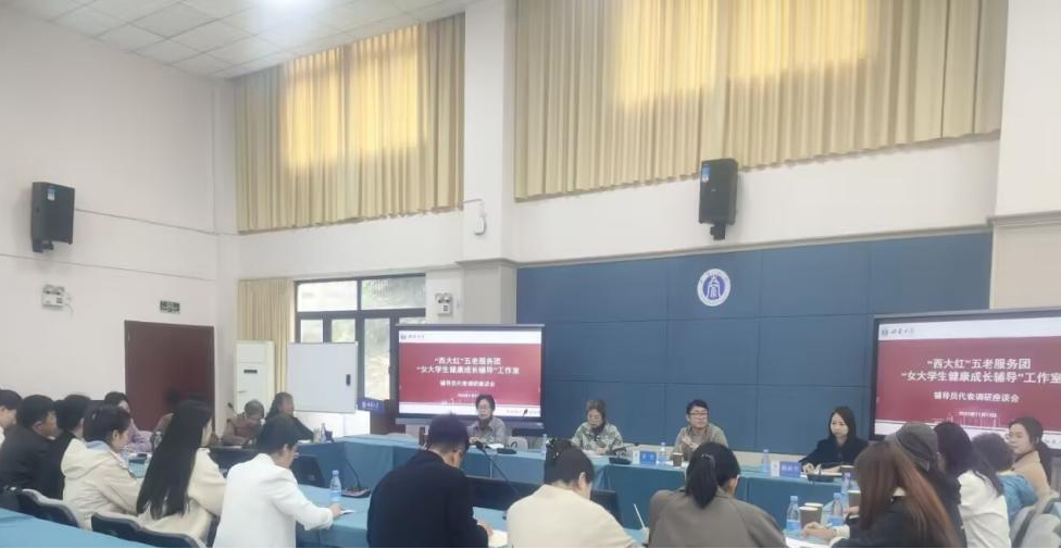 11月13日下午,“西大红”五老服务团“女大学生健康成长辅导”工作室组织召开了学校辅导员代表调研座谈会。本次座谈会以精准对接女大学生成长需求、破解育人工作难点、构建家校社协同育人格局为目标,围绕女大学生生理健康、心理健康、安全防护与成长发展等方面开展深度研讨。党委学生工作部副部长、学生工作处副处长罗军,“女大学生健康成长辅导”工作室全体成员及各学院(部)辅导员代表参会。罗军在开场发言中指出,本次座...