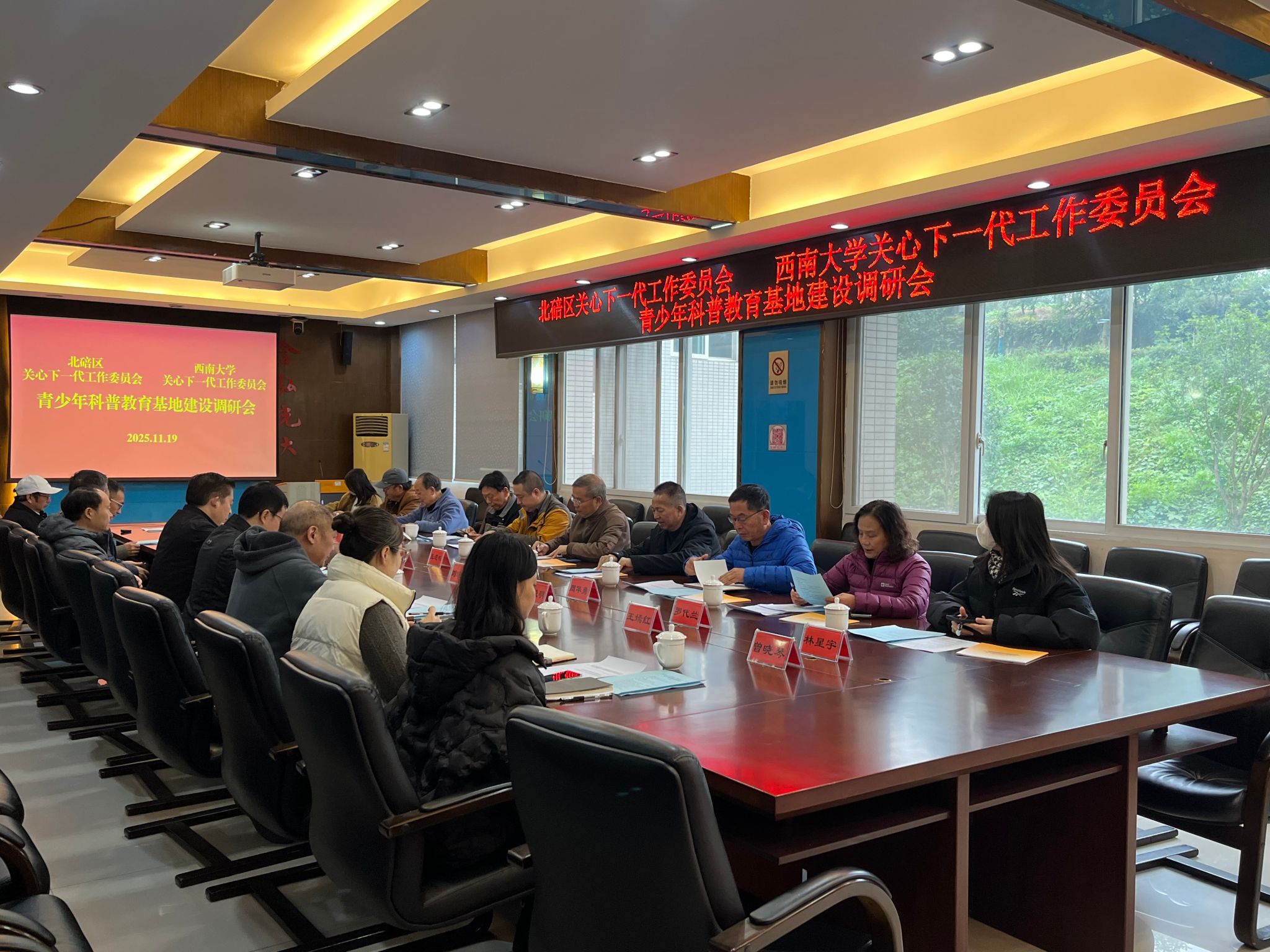 为进一步深化青少年科普教育工作,整合校地优质资源,推动青少年科普教育基地高质量建设,11月19日上午,西南大学关心下一代工作委员会与北碚区关心下一代工作委员会联合在西南大学柑桔研究所召开青少年科普教育基地建设调研座谈会。北碚区关工委常务副主任张遇鸣、副主任王学平、秘书长周华勇,学校柑桔研究所党委书记、关工委主任谭志友,学校柑桔研究所党委副书记、关工委副主任刘昭墩,学校离退休党委副书记、校关工委副秘书长熊伟及学校关工委秘书处相关成员参加会议。会议由校关工委副秘书长鲜宗广主持。