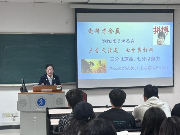 本次活动特邀学院“语翼银晖”服务团成员、原亚欧语系主任李密教授担任主讲人。学院党委副书记、纪委书记、关工委副主任梅胜利,副处级组织员石莹华,日语系主任、学院工会主席兼教代会主任彭玉全出席会议,2023-2025 级日语专业学生代表及辅导员代表参加本次活动。