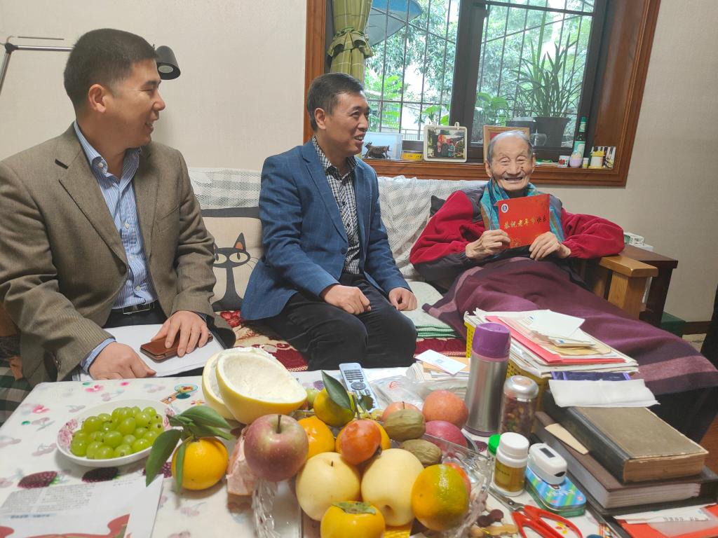 2021年重阳节来临之际,校长张卫国、校党委副书记安春元、潘洵等走访慰问我校90岁以上离退休教职工代表,为他们送上学校的关怀和温暖。党政办公室、党委组织部、党委宣传部、人力资源部、离退休工作处等部门负责人参加了慰问活动。