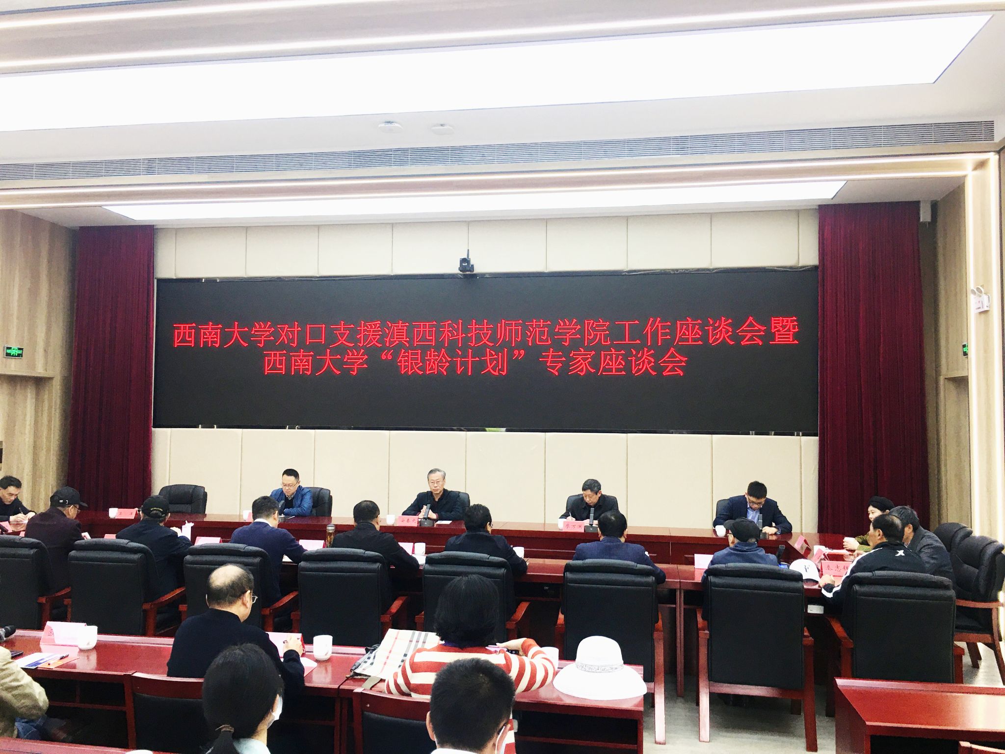 西南大学对口支援工作座谈会暨“银龄计划”专家座谈会上,董大校简要介绍了学院近四年来在西南大学对口帮扶下取得的成绩,并对我校援派的银龄教师在帮扶学院人才培养、科学研究和助力乡村振兴、服务地方经济社会发展等方面作出的成绩给予充分肯定和高度评价。希望西南大学在兼职博士生导师、联合申请专业硕士学位、师资队伍建设、本科教学工作合格评估等方面给予更多支持和帮扶。表示将倍加珍惜西南大学对口支援机遇,努力推动学校高质量发展。